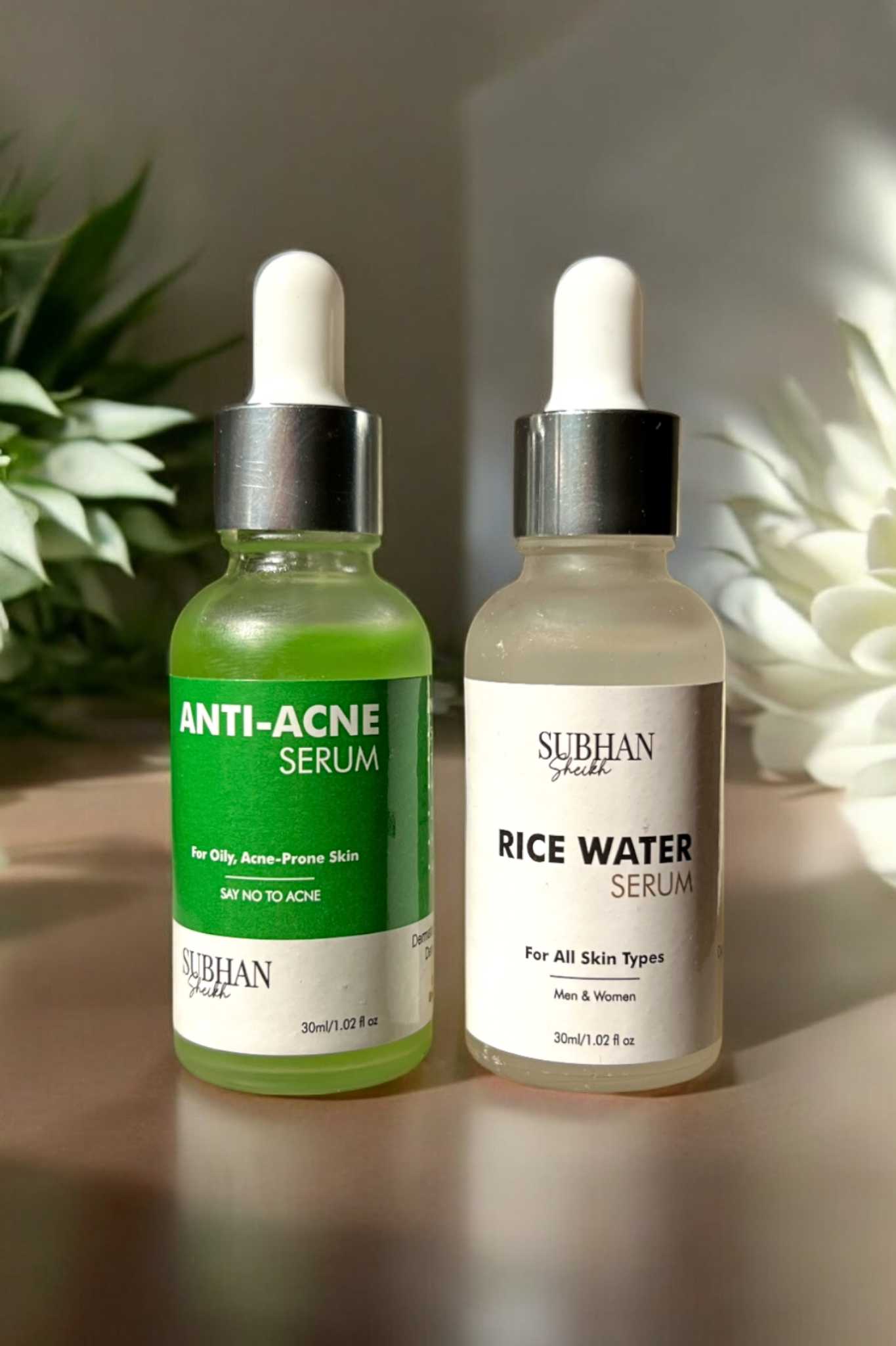 Achieve your clearest, most radiant skin with our perfect duo. The Anti-Acne Serum fights blemishes and calms irritation, while the Rice Water Serum deeply hydrates and brightens for a smooth, luminous complexion.